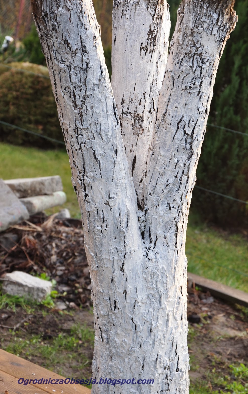 Kilka tygodni temu, podczas jednego z wielu ciepłych, suchych i słonecznych dni tej zimy, wzięłam się za pobielenie tych kilku drzewek, które mam na działce.
