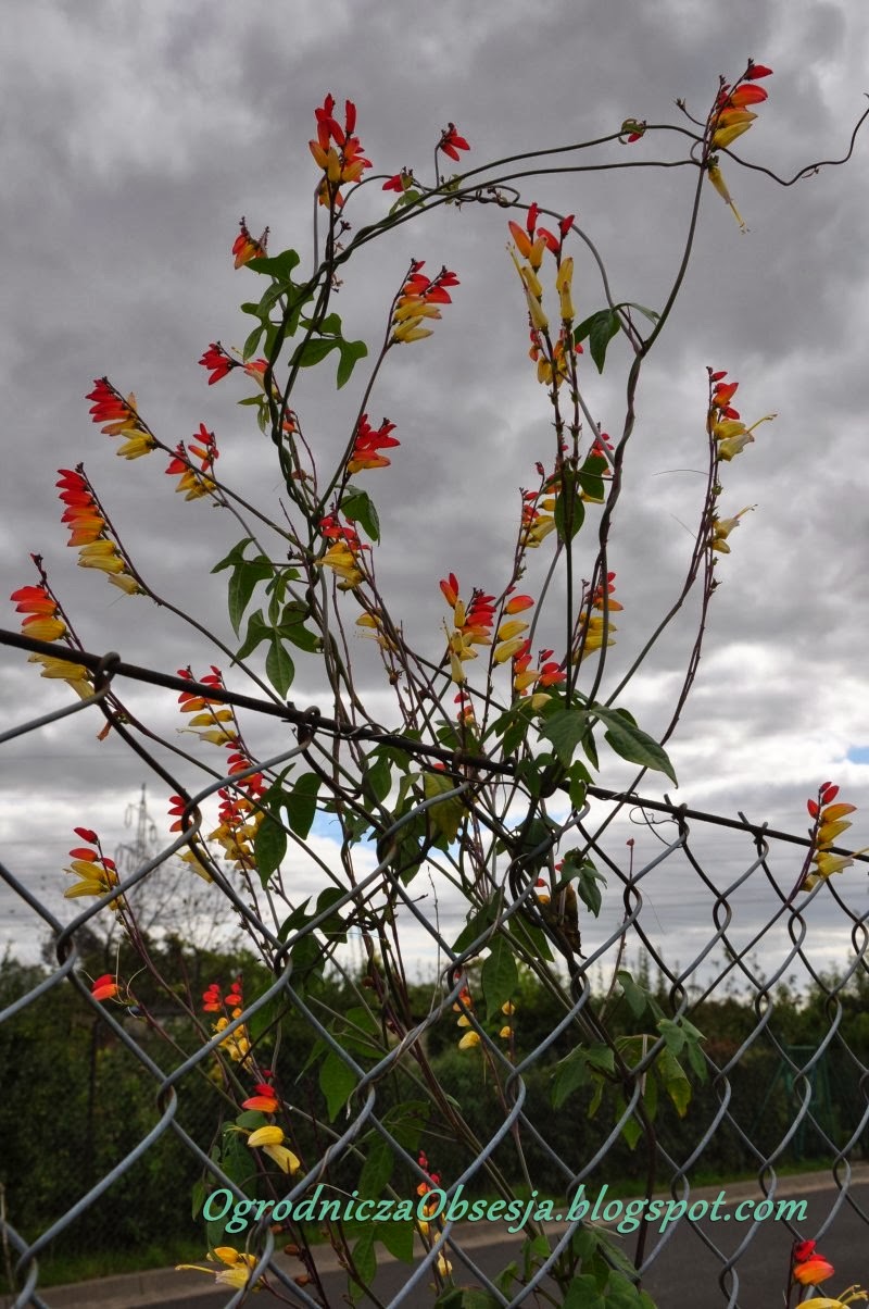 17. Mina lobata – pnącze o ognistych kwiatach! U siebie posiałam trochę późno i nie bardzo zdążyło się rozwinąć, ale zdjęcia tego kwiata są u niektórych imponujące – kwitnący wygląda jak pochodnia. Kwitnie od lipca/sierpnia, w zależności, czy wysiejemy pod osłony, czy bezpośrednio do gruntu. Nasiona dobrze jest pomoczyć w wodzie przed wysianiem. Wrażliwa na zimno, więc wysadzamy/siejemy, gdy nie ma już zagrożenia przymrozkami. Pochodzi z Meksyku, dlatego u nas będzie tylko jednoroczna.