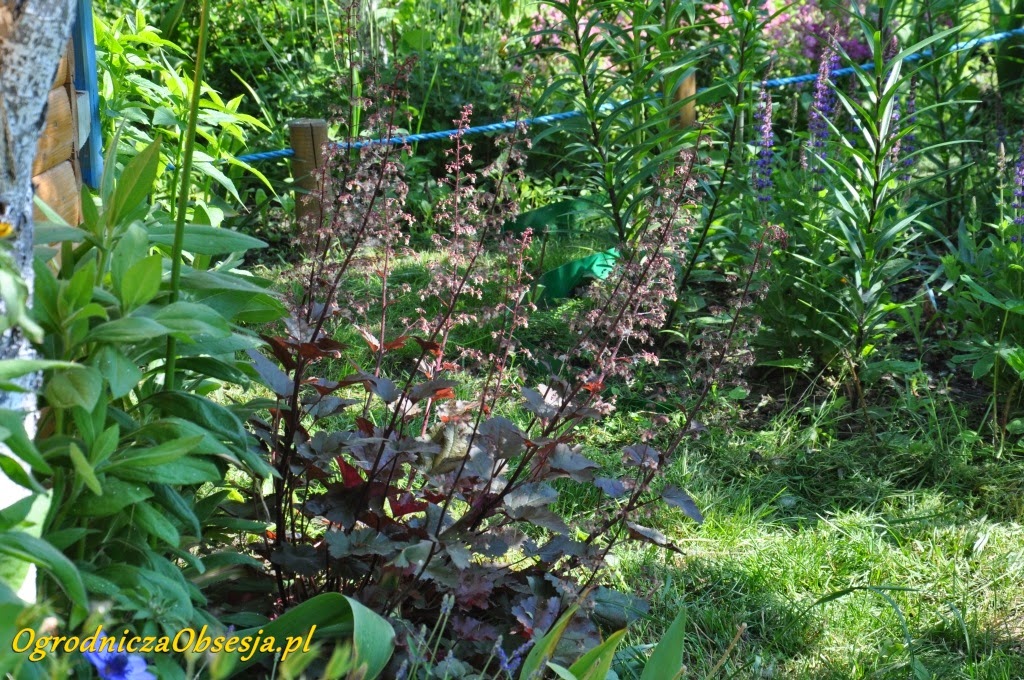 Mam wrażenie, że wszystko szybciej przychodzi, niż w zeszłym roku… Truskawki już w pełni i nie nadążamy ze zrywaniem, a to dopiero początek czerwca! Nagle zakwitły ostróżki, a konwalie zniknęły z pola widzenia. Róże swoim zapachem każą odwrócić głowę w ich stronę, patrzysz, a tu cały różowy krzew! Wieczorem coś pachnie – to maciejki u sąsiada. Małe, białe maliny zaczynają dojrzewać, a czosnek trzeba było już ogłowić. Szczypior dymki zaczyna się załamywać, ziemniaki kwitną. chyba można już młode podbierać? Piwonie w rozkwicie, czosnki ozdobne już rozrzucają nasiona, podobnie orliki. Pustynnik kwitnie, hortensja ma już małe pączki. Margerytki już dawno z dnia na dzień zakwitły łanami stokrotek, teraz pokładają się po deszczu na rabatach. Monardy i lilie dorastają do 1 metra wysokości, winorośl ma zaczątki owoców i codziennie jej przybywa w oczach, niedługo nie doszukamy się altany! Patrzysz w górę, a tam małe jabłka już wiszą. Patrzysz w dół, a tu trzeba znowu trawę skosić. Patrzysz w prawo, a porzeczki czarne już będą robić się czarne… Patrzysz w lewo, juka karolińska ma już metrowy pąk!