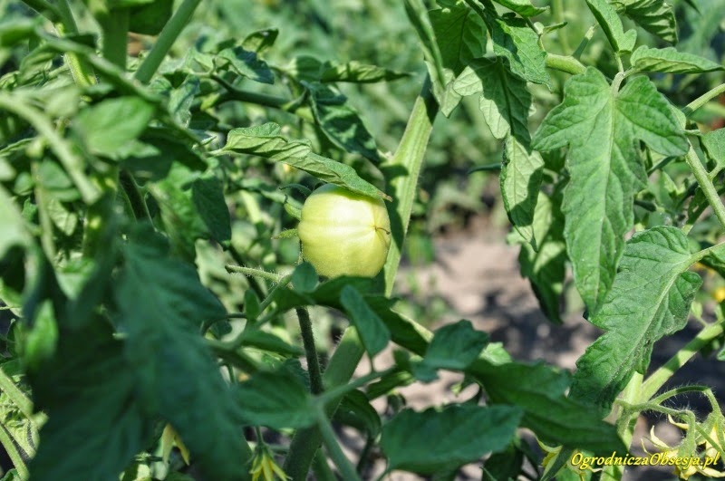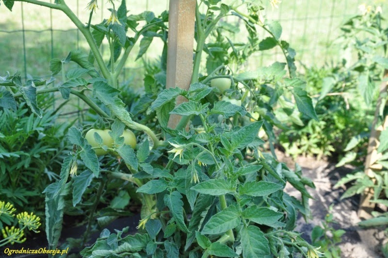 Pomidory już zielone – tak, tak, wiem, że u wielu osób już dawno zbiory, ale u nas be z folii i trochę później… Odmiana Hector jest najszybsza. Pomidorki są póki co zdrowe – tfu! tfu! Prewencyjnie pryskam je wyciągiem z czosnku, nawożę gnojówką z pokrzywy i czekam na pierwszy dojrzały owoc.