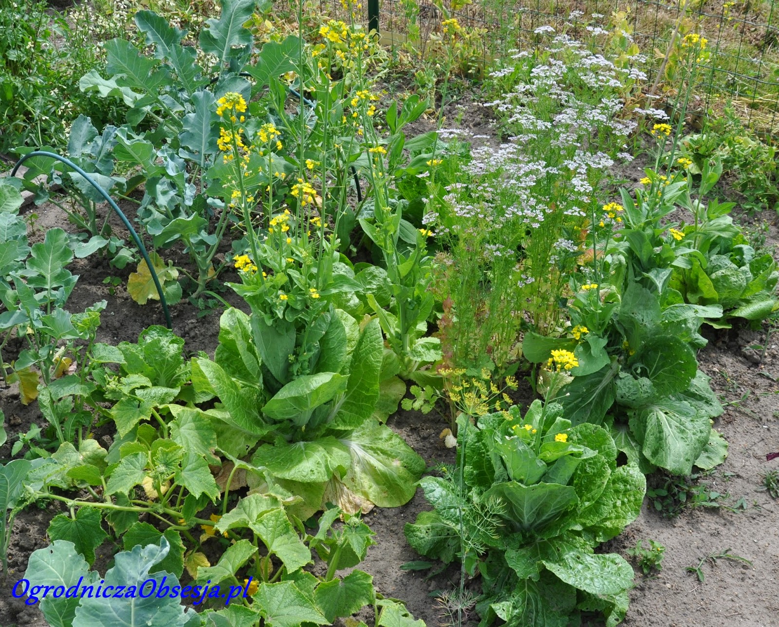 No i oczywiście kapustne – brokuł i kalafior, kapusta biała i brukselska. Pierwszy raz uprawiam kapustne. Mam też pekińską, ale od razu poszła w kwiaty, niestety… Pomiędzy nimi posiałam kolendrę i ogórki (dobre sąsiedztwo). Widzę już zawiązki pierwszych kapust-główek i brokułów :).