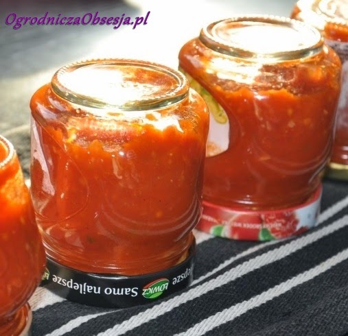 Jeśli, tak jak u nas, złapała u Was zaraza i macie nadmiar pomidorów, albo po prostu macie ochotę coś zamknąć w słoikach na przyszłość, podaję prosty przepis, który jest luźny i jest kombinacją różnych przepisów, znalezionych w internecie.
