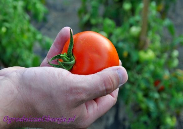 Ja uprawiam pomidory dla zapachu… dla zapachu właśnie. Uwielbiam przechadzać się po swojej pomidorowej grządce i wdychać!… Najlepiej rano, rosa na liściach, schylisz się i już jesteś całą sobą w aromacie pomidorowym. Przywodzi mi to na myśl dom rodzinny, z wielkim tunelem foliowym, zwanym folią po prostu, z mnóstwem pomidorów, które potem wiadrami z tejże wynosiliśmy… Najlepszy świeży, niemyty, czerwony pomidor prosto z krzaka zjeść… Co za luksus teraz!