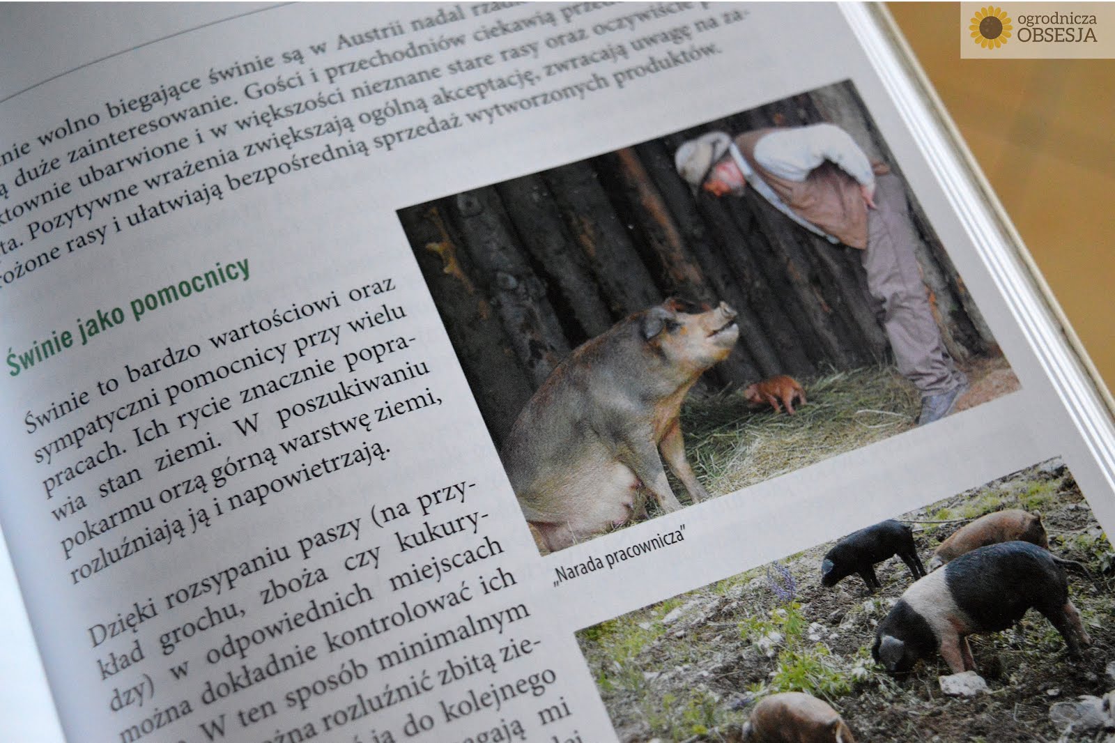 Ale zbaczam z tematu, więc wracamy do samej książki. Bo znajdziecie w niej również wiele praktycznych porad, bardzo przydatnych, do zastosowania od zaraz. Książka opisuje, co następuje: Kształtowanie terenu (zakładanie permakultury, tarasy i drogi, zagony, pagórki, woda), Rolnictwo alternatywne (gleba, nawóz, stare odmiany roślin, wskazówki do upraw, alternatywna hodowla zwierząt – świnie, bydło, ptaki), Uprawa owoców i sady (metody, odmiany, rozmnażanie, sprzedaż), Uprawa grzybów (na drewnie, na słomie), Ogrody (wreszcie! przydomowe, nawożenie naturalne, tzw. szkodniki, ogrody miejskie, lista roślin). Na koniec poczytamy o różnych projektach permakutlurowych – przykłady dla dodania nam odwagi :).Kto traktuje przyrodę i Stworzenie z szacunkiem i empatią, ten z pewnością otrzyma to samo.