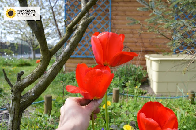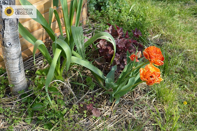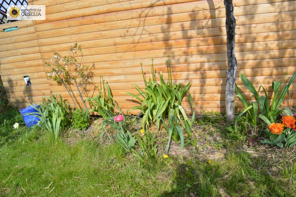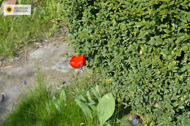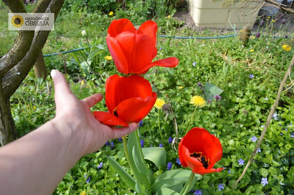 Najśmieszniejsze, że to nie ja je posadziłam (śmieszne zaiste). Ja w ogóle nie wykopuję cebul na jesień tylko zostawiam. Mam z tym takie doświadczenia, że w pierwszym a czasem i drugim roku one są słabe, pomnożone cebulki małe, ale na 2-3 rok to jak wyskoczą! Piękne kępy. I tak się powoli rozrastają. Ludzie, ja na „trawniku” odkryłam pojedyncze listki tulipana – przez nasiona? Chyba. Cudowne uczucie takie rzeczy odkrywać.