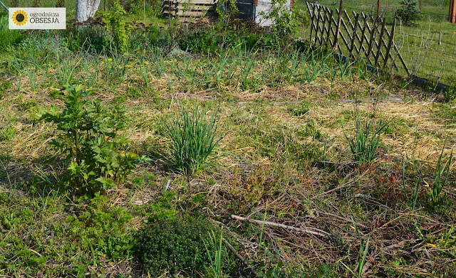 Mój permakulturowy eksperyment wykorzystuje słomę – to od Masanobu pożyczyłam. Słomy, jak widać, nie ma na tyle, żeby zagłuszyła inne rośliny, więc się wybijają. Cały ogród mam zielony… poprzetykany słomą oczywiście. Im dalej w czas, tym bardziej gęsto. Wyższe wszystko. Silniejsze. Bardziej widoczne. Widzą wszyscy – i z ulicy, i działkowi sąsiedzi. Co sobie myślą – mogę zgadywać.