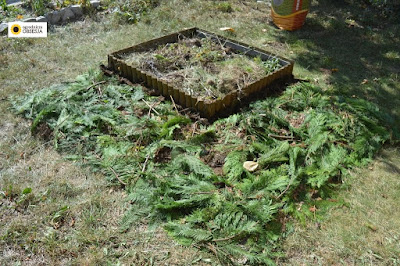 3. Kolejna warstwa to części roślinne, które akurat wpadły mi w ręce – były gałązki iglaków, skoszona trawa.