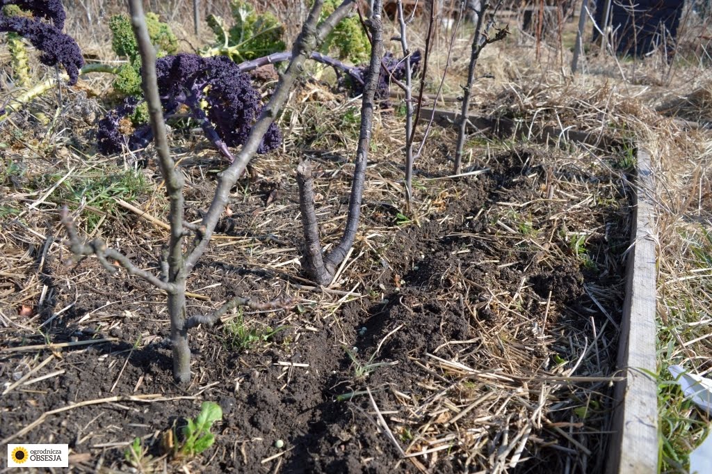 – wyściółkowałam ziemię koło małej jabłonki, bo taka goła, to wiadomo, że zaraz trawą zarośnie, nim się obejrzę…