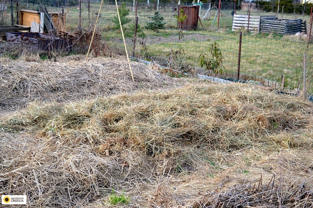 Ziemniaki rzuciłam na ściółkę, którą przygotowałam jesienią (kartony, zrębki, siano).
