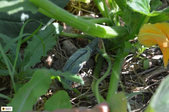 Te łodygi teraz wyglądają niesamowicie i widać w nich historię żeru ślimaków. A cukinie już rozwijają owoce…