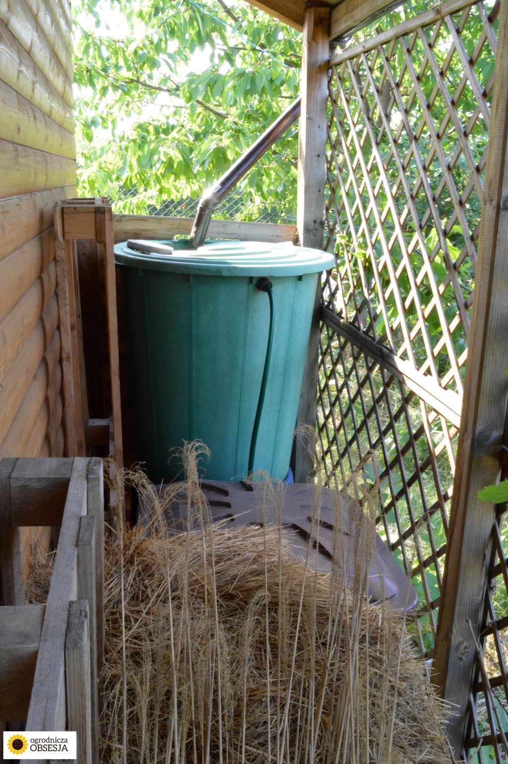 A tutaj mam już od lat działający system, że z jednej beczki, umieszczonej wyżej, wlewa się do drugiej, niżej. I to działa bardzo dobrze.