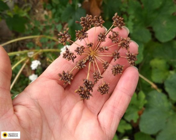 Podobnie z pietruszką, na wiosnę wyszła znowu ta posiana w zeszłym roku i zakwitła. Teraz zawiązane nasiona zaczynają schnąć i powoli można je zbierać.