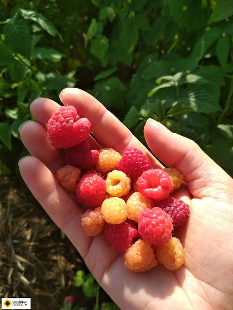 Patrzę, a tu maliny, czerwone porzeczki, wiśnie i czereśnie. Porzeczki czarne i agrest jeszcze potrzebują parę dni. Ale owoce już ruszyły.