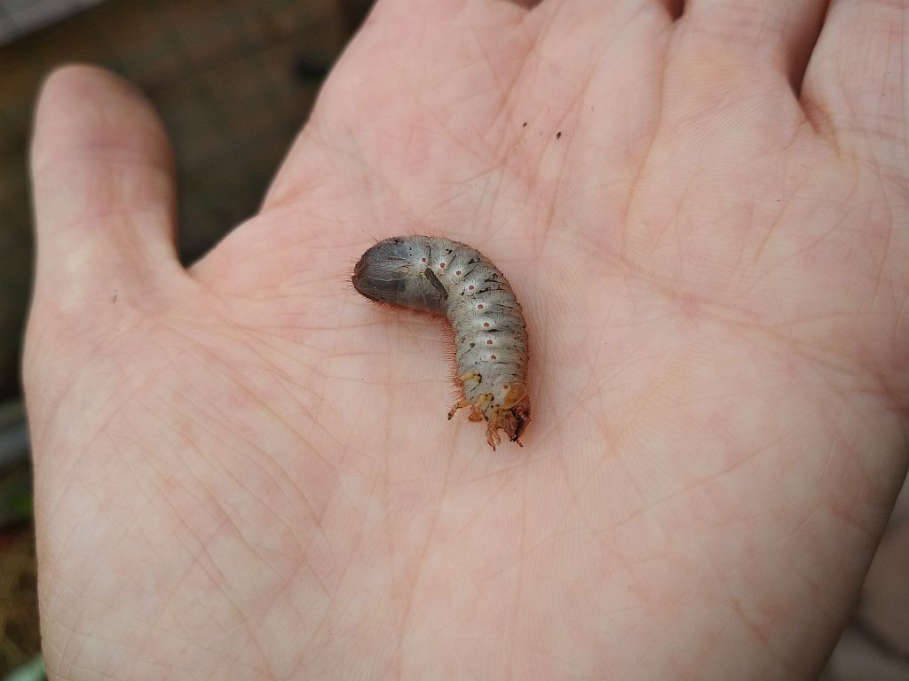Ponieważ pędrak chrabąszcza żywi się korzeniami roślin, uznawany jest za szkodnika. Trochę zastanowiło mnie, czemu zjada siano… ale co ja tam wiem. Wyzbierałam wszystkie (sporo…) i wywiozłam poza działkę tam, gdzie wywożę ślimaki.