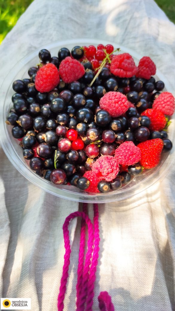 Cały czas trwają zbiory owoców: porzeczek, malin, początki agrestu. Czego nie zjem, to przerabiam na wieloowocowe dżemy. Pomimo początkowych problemów z pękającymi owocami czarnej porzeczki od deszczu, sprawa się unormowała. Pięknie owocują też maliny, zapewne w dużej mierze dzięki deszczom właśnie.